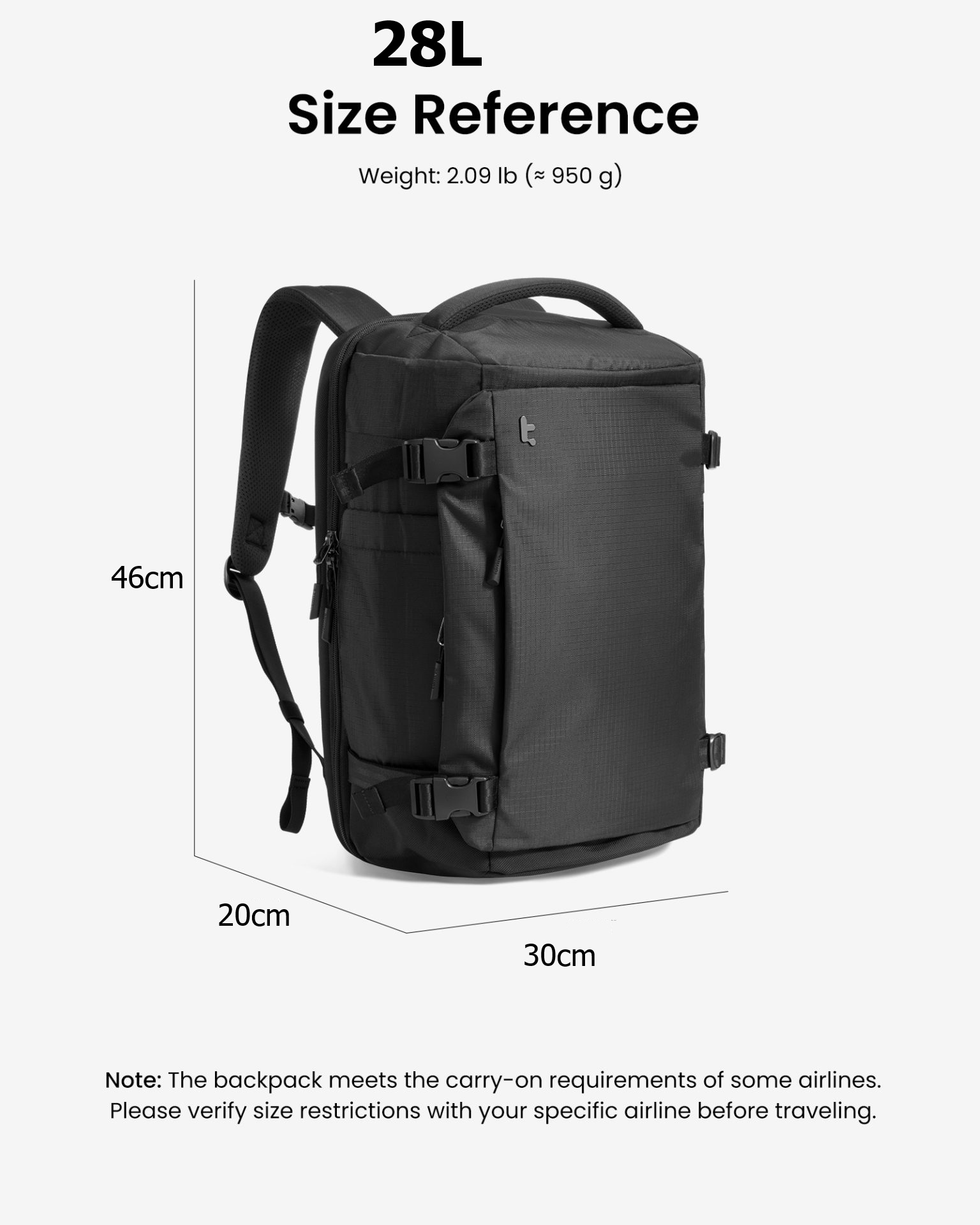Với dung tích 28L, chiếc balo này là lựa chọn lý tưởng cho những chuyến đi cuối tuần hoặc nghỉ dưỡng 2-3 ngày. Kích thước balo được IATA chấp thuận, dễ dàng để vừa trong ngăn đựng hành lý xách tay trên máy bay, giúp bạn tiết kiệm thời gian và không cần phải ký gửi hành lý.