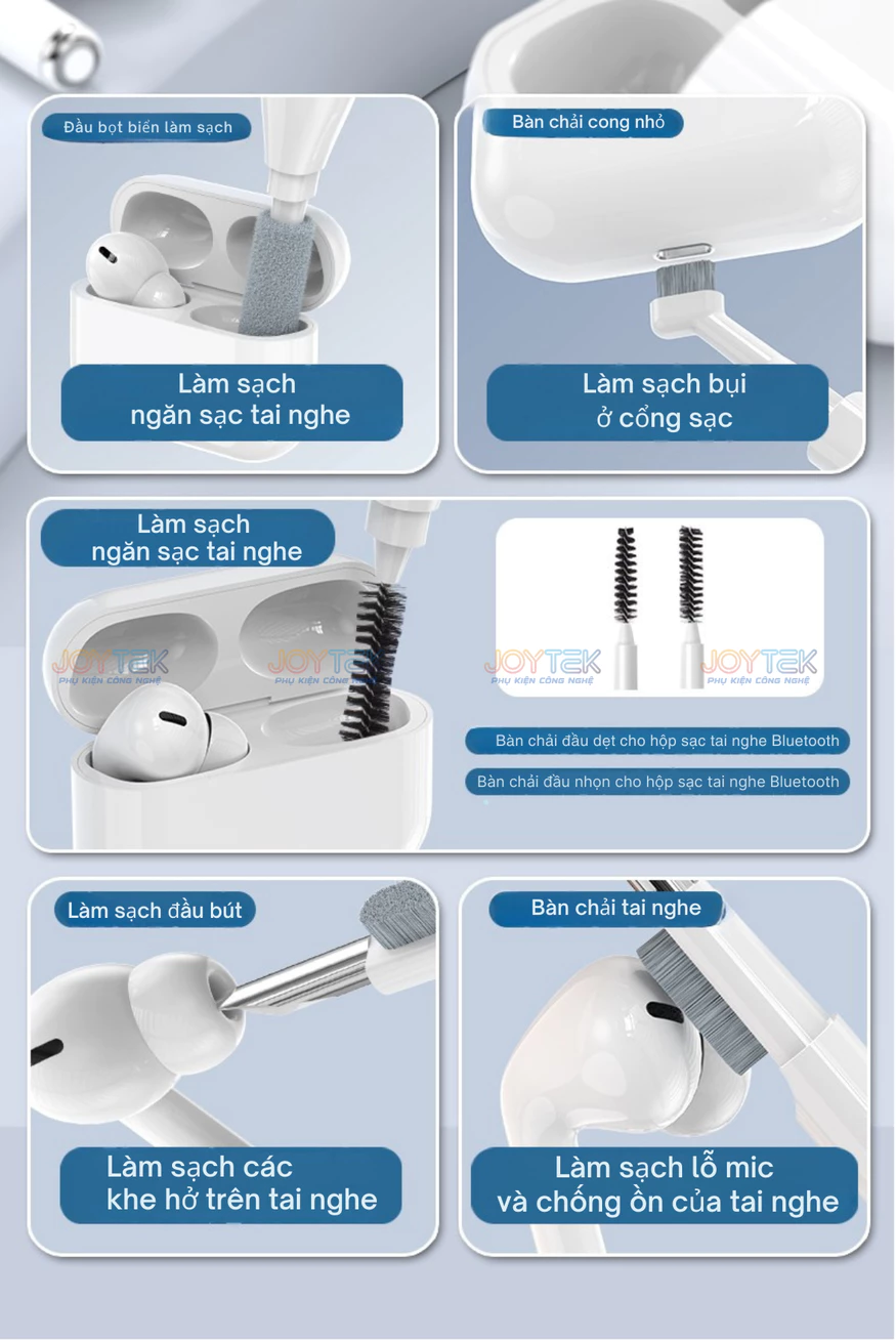 ✔ Vệ sinh tai nghe, hộp sạc Bluetooth, mic, lưới chống ồn