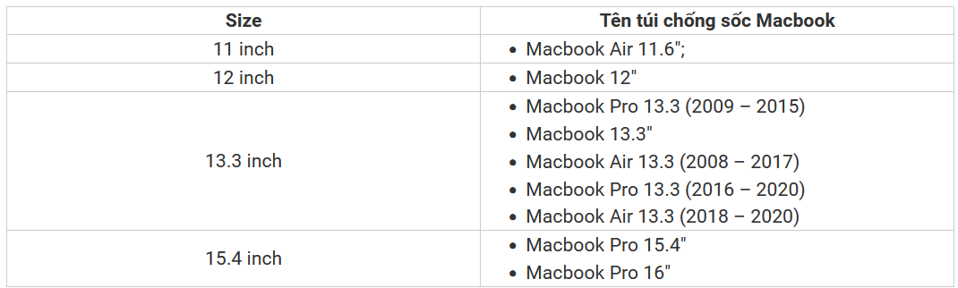 Túi chống sốc có rất nhiều thương hiệu cũng như chất liệu khác nhau với nhiều kích thước để phù hợp với máy của bạn. Khi quyết định lựa chọn mua túi chống sốc cần tìm hiểu kỹ trước các thông số về kích thước để lựa chọn được sản phẩm phù hợp.