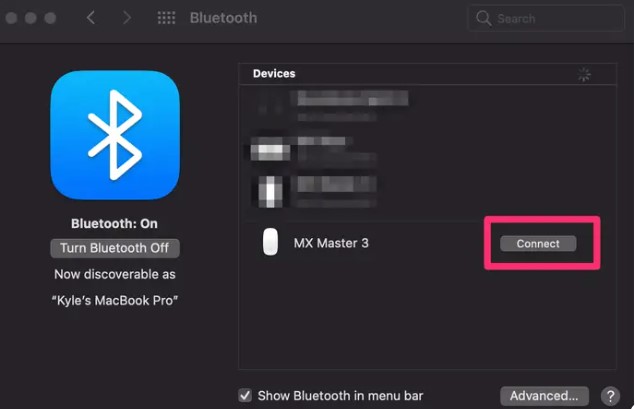 Bước 6: Chờ chuột của bạn xuất hiện trên danh sách. Nhấp vào biểu tượng của nó hoặc nút Kết nối ( Connect ) để kết thúc quá trình ghép nối.