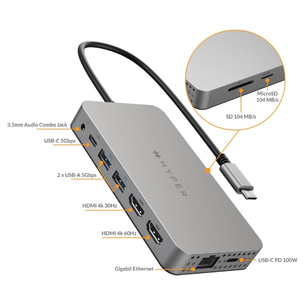 Chi tiết sản phẩm: Cổng Chuyển HYPERDRIVE DUAL 4K HDMI 10-IN-1 (2 MÀN HÌNH) USB-C HUB FOR MACBOOK M1 HDM1H