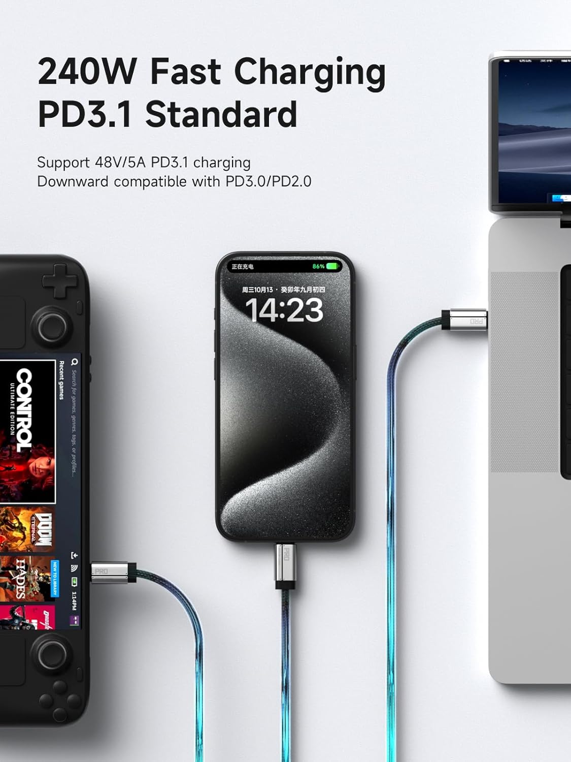 Truyền dữ liệu 80Gbps Truyền các tệp lớn trong vài giây: Tốc độ truyền thông số kỹ thuật 0,5m lên đến 80Gbps, Đáp ứng nhu cầu của các thiết bị hiệu suất cao