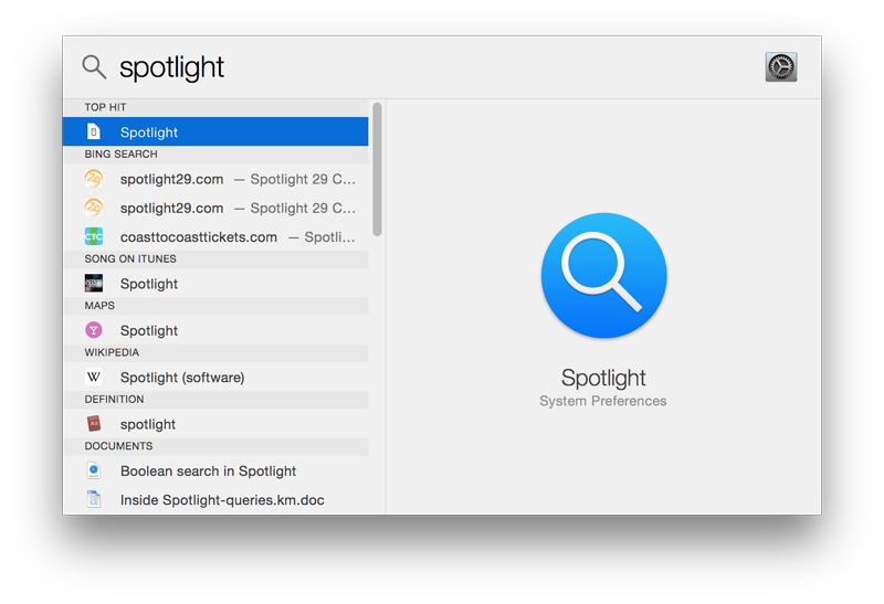 Spolight trên MacBook có thể coi như là tính năng tìm kiếm trên WindowsOS. Tính năng này giúp cho người dùng nhanh chóng tìm ra thú mà họ đang cần. Spolight mang tới khả năng preview (xem trước) các tập tin ví dụ như văn bản, hình ảnh, video và thậm chí là cả file PDF.