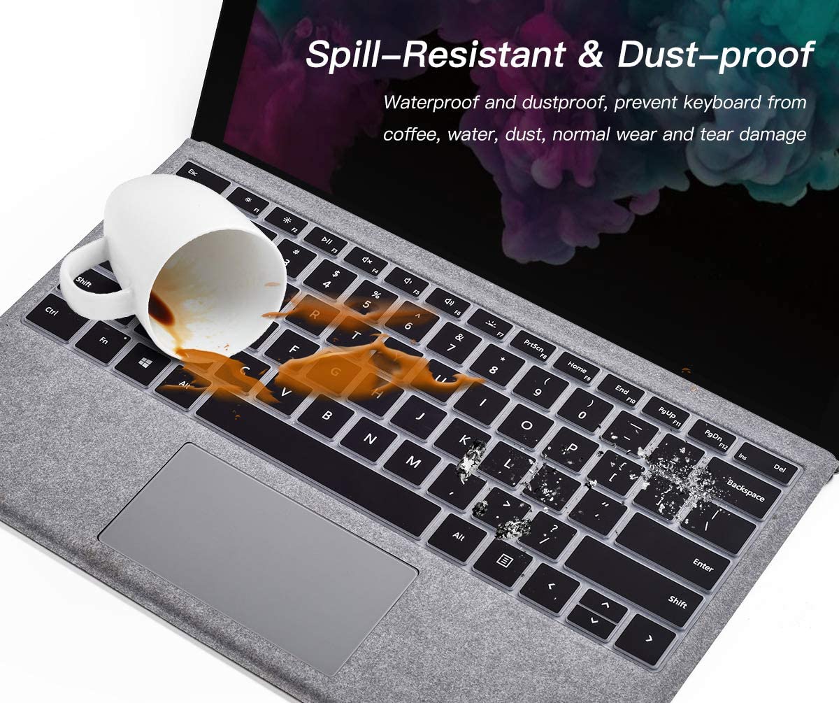 Miếng phủ bàn phím Surface được làm từ Silicon, thiết kế ôm từng hạt phím nên sẽ không bị xộc xệch, không bị rơi, cho cảm giác gõ phím chân thật