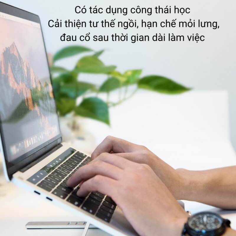 Ngoài mắt, thắt lưng và cổ tay là hai bộ phận phải chịu nhiều áp lực đối với những người thường xuyên làm việc với máy tính. Ngồi nhiều và không đúng tư thế là một trong những nguyên nhân. Sự xuất hiện của đế kê sẽ cải thiện tình trạng này. Khi máy được đặt góc và cố định trên đế, tư thế của bạn sẽ được điều chỉnh dần dần.