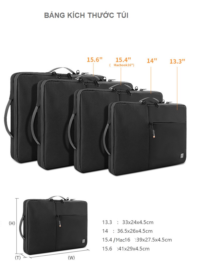 + Kích thước: 13, 14, 15,16inch ( xem bảng kích thước để chọn túi cho phù hợp)