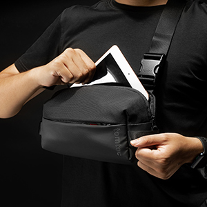 Có ba ngăn. Truy cập nhanh túi trước cho AirPods Pro, thẻ tín dụng; Nhiều túi bên trong ở giữa cho các thiết bị công nghệ, chẳng hạn như Kindle, bảng điều khiển Nintendo Switch, Power Bank, cáp, v.v.; Túi sau ẩn cho điện thoại di động hoặc hộ chiếu của bạn.