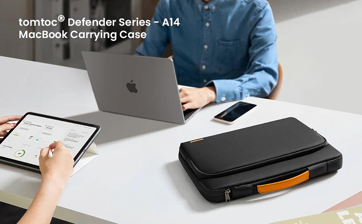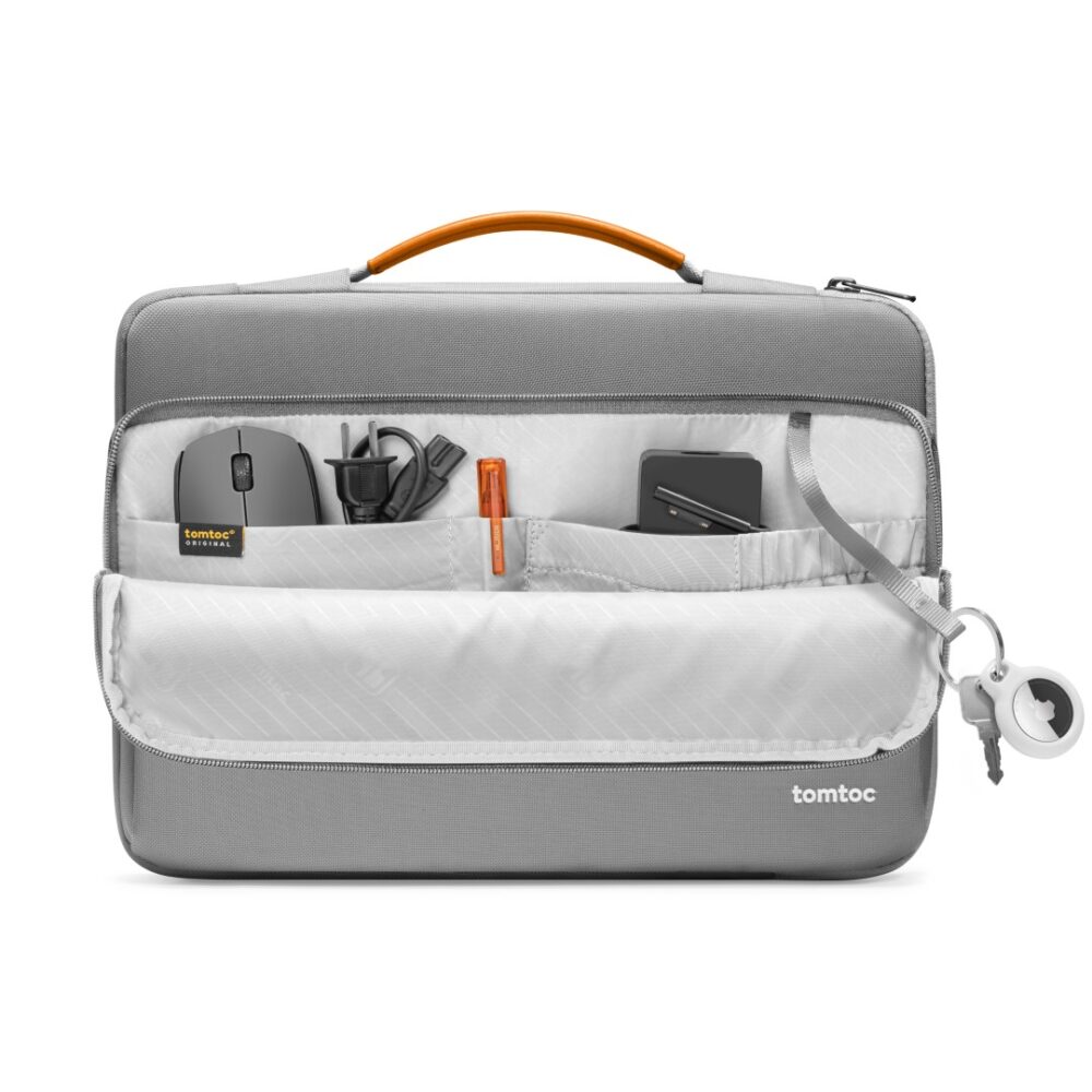 – Sử dụng công nghệ sáng chế tiên tiến của Hoa Kỳ CornerArmor™ trang bị phía dưới túi chống sốc một lớp đệm bảo vệ 360* xung quanh vành túi một cách an toàn như một túi khí xe hơi. Túi xách chống sốc Tomtoc Briefcase thu hút khách hàng khó tính bởi kết cấu chống sốc hoàn hảo giúp máy tính hoàn toàn có thể được bảo vệ khi sảy ra vấn đề va chạm.